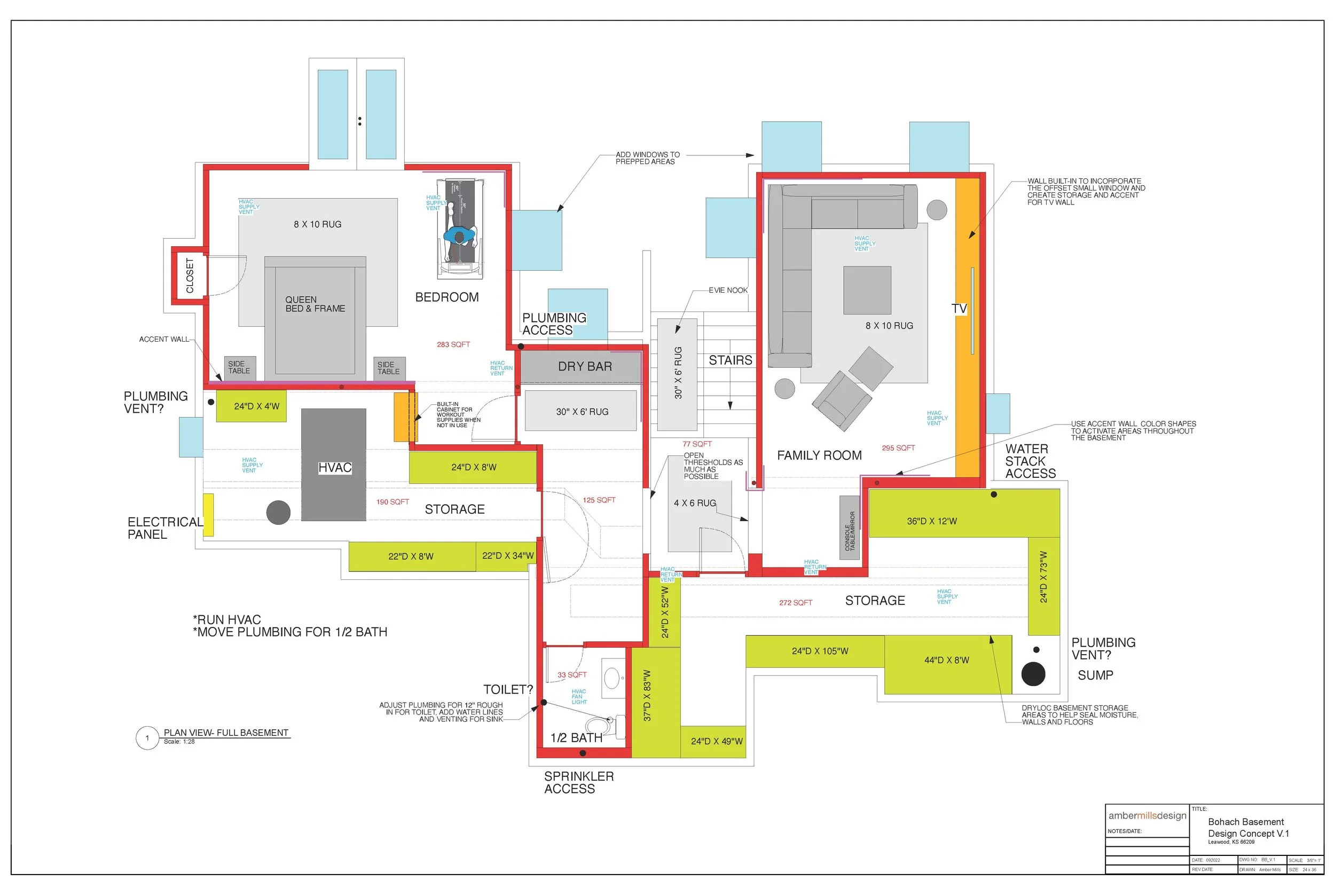 3D Visualization of Room Design- Adding a rendering or two can give more perspective to the plan view and mood board.